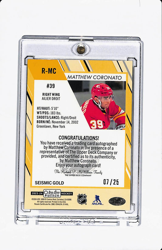 2023-2024 OPC PLATINUM MATTHEW CORONATO SEISMIC GOLD ROOKIE AUTOGRAPH /25 *ON CARD*
