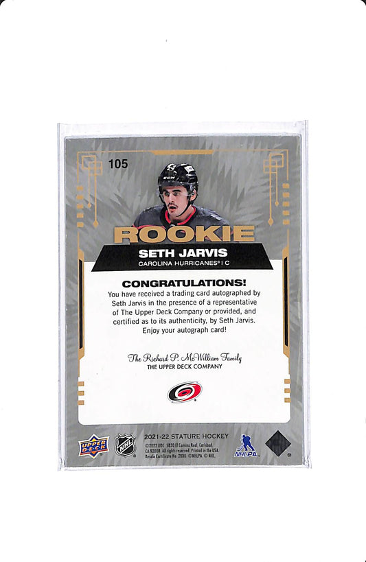 2021-22 UPPER DECK STATURE SETH JARVIS ROOKIE AUTO 49/49