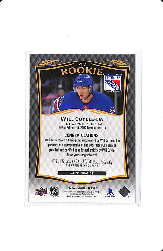 2023-24 UPPER DECK STATURE ROOKIE ORANGE AUTO WILL CUYLLE 18/50