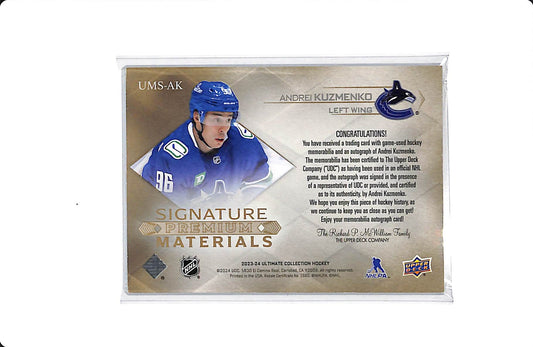 2023-24 UPPER DECK ULTIMATE COLLECTION SIGNATURE PREMIUM MATERIALS ANDREI KUZMENKO PATCH AUTO 17/35