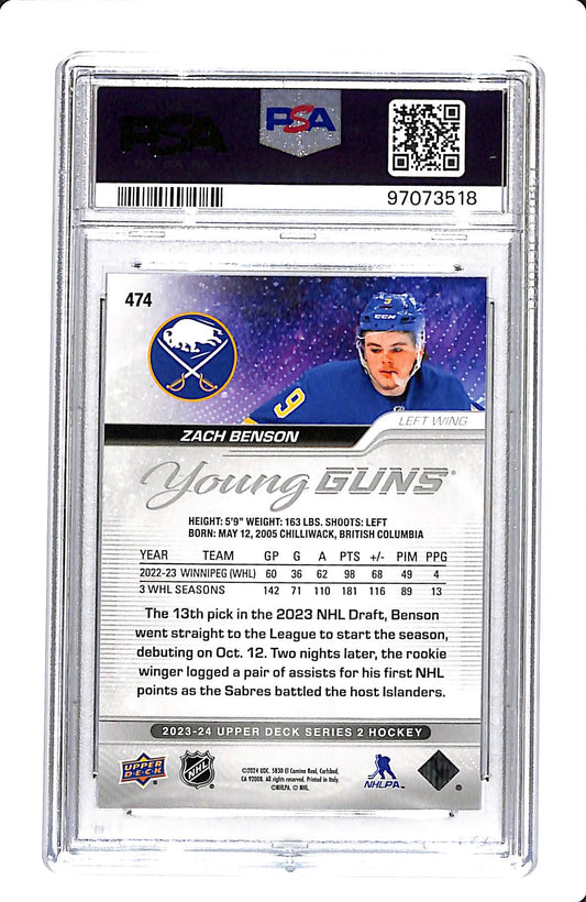 2023 UPPER DECK YOUNG GUNS ZACH BENSON PSA 10
