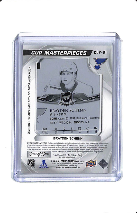 2024-25 UPPER DECK THE CUP CUP MASTERPIECES BLACK PRINTING PLATE BRAYDEN SCHENN ONE OF ONE AUTO
