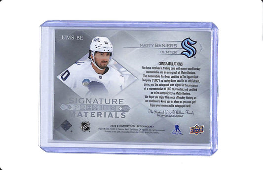 2023-24 UPPER DECK ULTIMATE COLLECTION SIGNATURE PREMIUM MATERIALS PATCH AUTO MATTY BENIERS 14/99