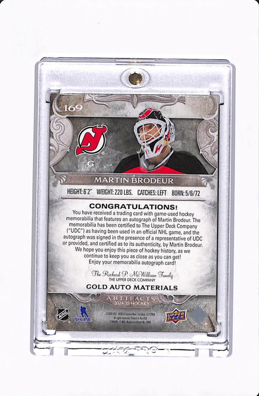 2024-25 UD ARTIFACTS MARTIN BRODEUR GOLD AUTO MATERIALS /25