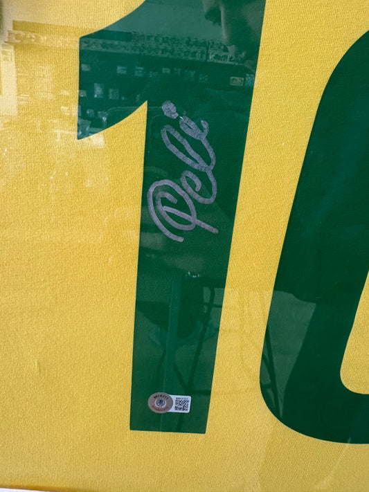 Pele Signed Autographed Framed Brazil Soccer Jersey Beckett COA
