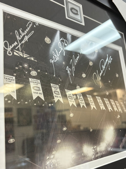 Jean Bealiveau, Yvon Cournoyer, Henri Richard & Guy Lafleur Montreal Canadiens Stanley Cup Banners Signed Autographed Framed Memorable Authentic COA