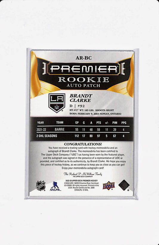 2022-23 UPPER DECK PREMIER BRANDT CLARKE ROOKIE AUTO PATCH #AR-BC /249