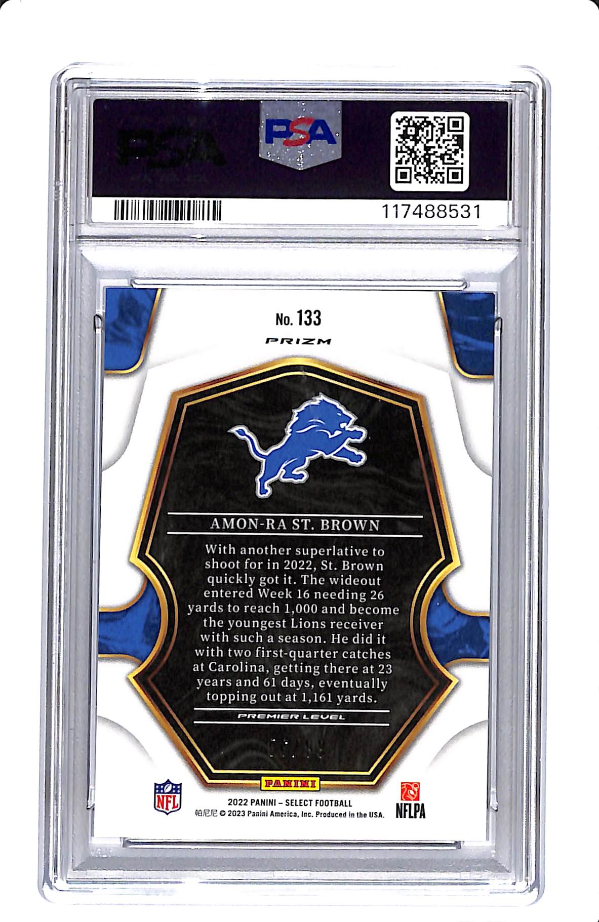 2022 SELECT AMON-RA ST.BROWN LIGHT BLUE PRIZM PSA/DAN CERT PSA 9 AUTO 10