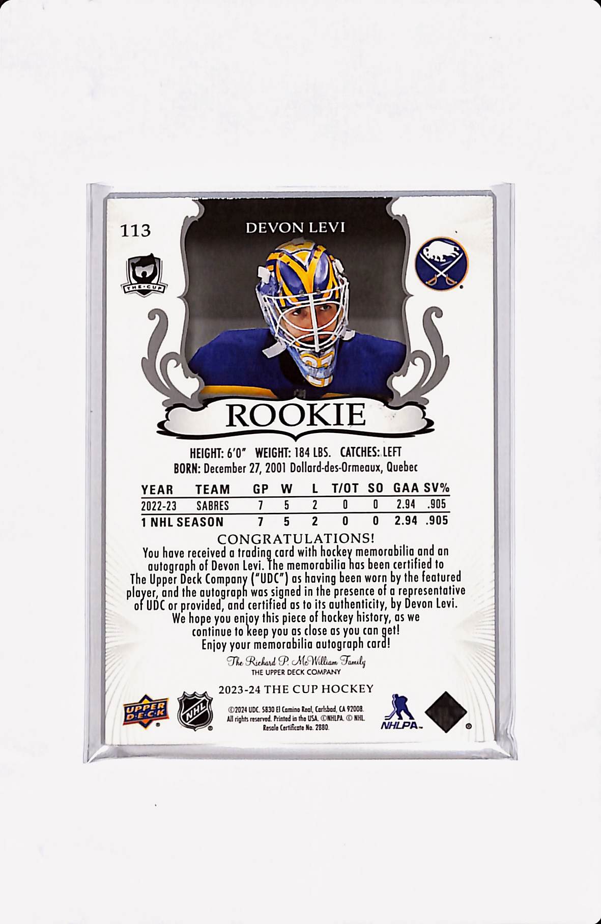 2023-24 THE CUP DEVON LEVI ROOKIE AUTO PATCH 01/24