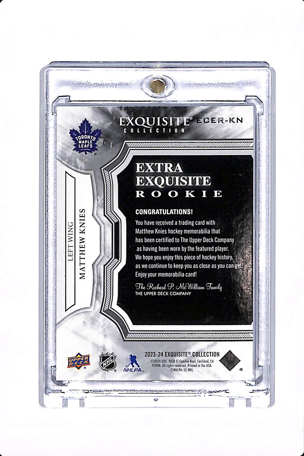 2023-24 UPPER DECK EXQUISITE MATTHEW KNIES EXTRA EXQUISITE ROOKIE PATCH /10 #ECER-KN