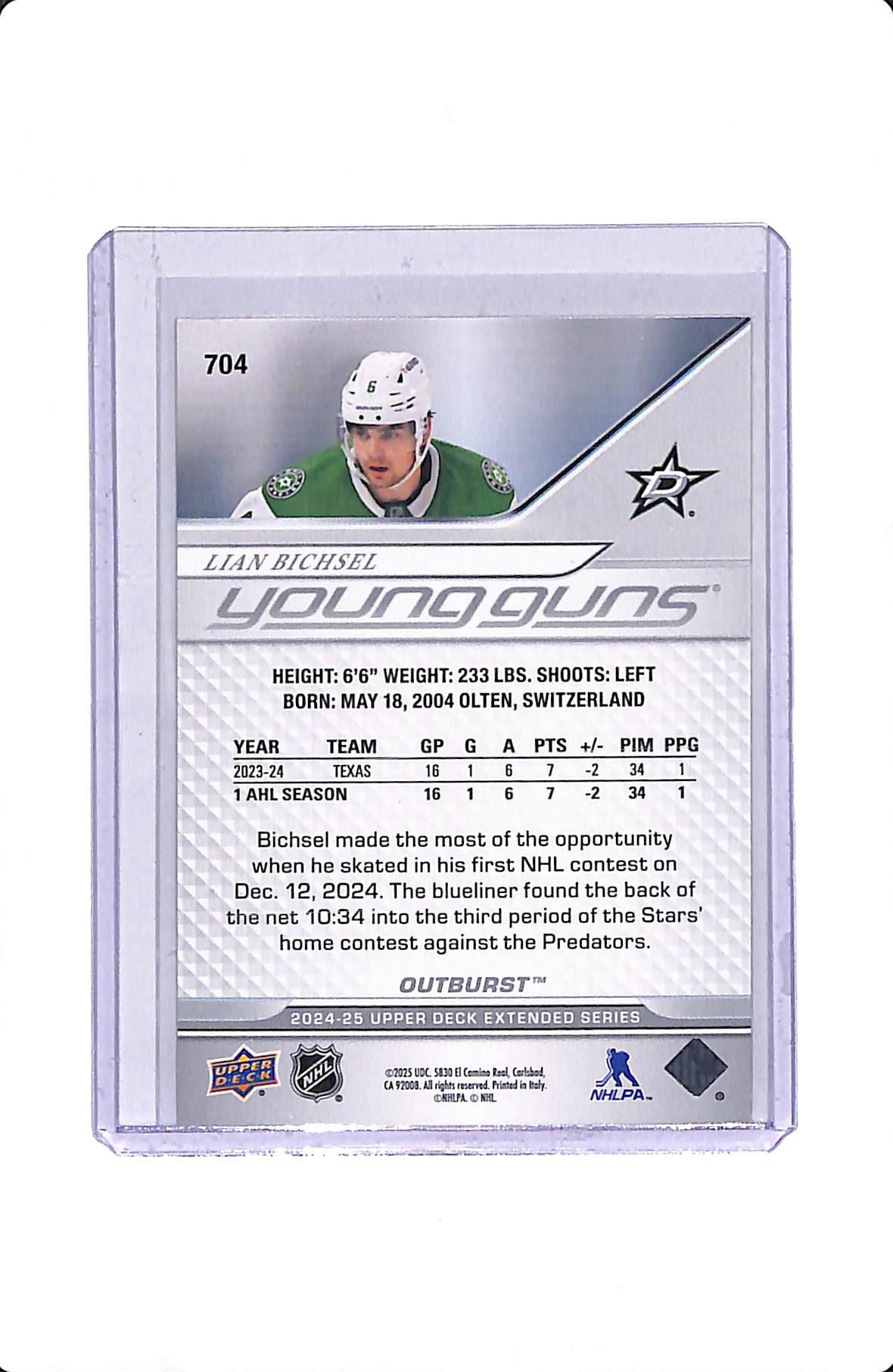 2024-25 UD EXTENDED SERIES YOUNG GUNS LIAN BICHSEL RED OUTBURST #704